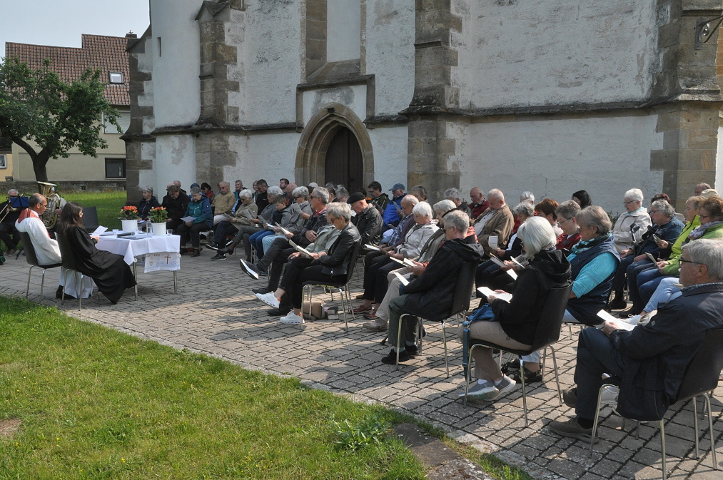An Pfingstmontag, 9. Juni 2025, fand traditionell in Pfarrweisach vor der Pfarrkirche St. Kilian an ökumenischer Gottesdienst statt. Viele Gläubige beideer Konfessionen nahmen daran teil. Pfarrerin Eszter Manke-Lackner und ihr katholischer Amtsbruder Pater Sinto George zelebrierten den Gottesdienst. Die Geistliche beleuchtete in der Predigt, beeindruckt vom Feuer des Pfingstfestes, viele Gänsehaut-Momente. Der Gottesdienst war vom Posaunenchor Fischbach (Leitung Heolmut Horn) musikalische umrahmt worden.