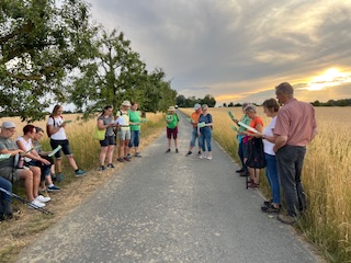 Gemeinsam sind wir am Samstagabend des 5. Juli aufgebrochen, um pilgernd dem Sonnenuntergang entgegenzugehen. In der Gemeinschaft mit 22 Menschen unterwegs zu sein hat uns getragen und verbunden – jeder Schritt wurde zum geteilten Weg, jedes Schweigen zur geteilten Erfahrung. Die Stille der Natur schenkte Raum zum Innehalten und Nachdenken, Raum um Gott zu begegnen.