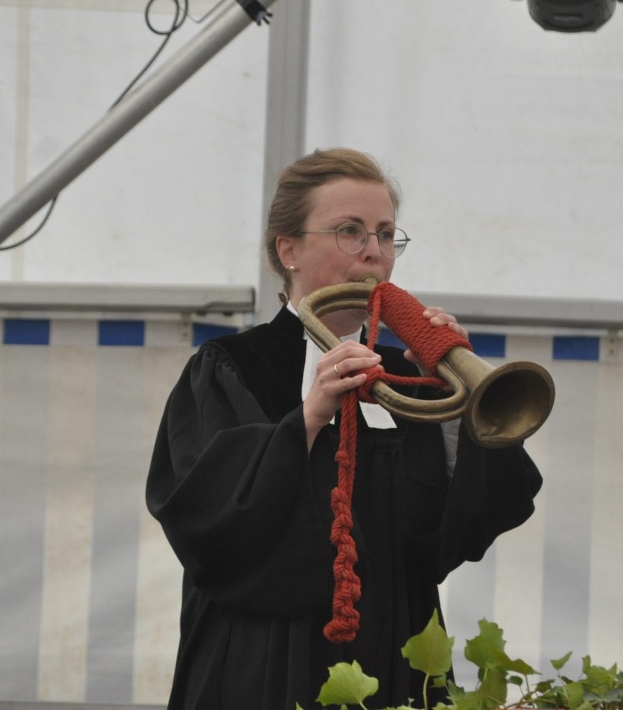 Das hat man auch nicht alle Tage: zwei Priesterinnen und ein katholischer Lektor in einem Gottesdienst, so wie er am Sonntag, 13. Juli, beim Jubiläum zum 150. Geburtstag der Feuerwehr Fischbach-Höchstädten im proppenvollen Festzelt stattfand. In der Predigt gingen die drei auf die Entstehung der Feuerwehr Fischbach-Höchstädten ein, so wie es sich vielleicht zugetragen haben könnte, gespickt mit Anekdoten. Pfarrerin Lena Gleußner blies dabei mit einem originalen Feuerwehrhorn, Lektor Klemens Albert (Kraisdorf) segnete die neue Motorspritze.